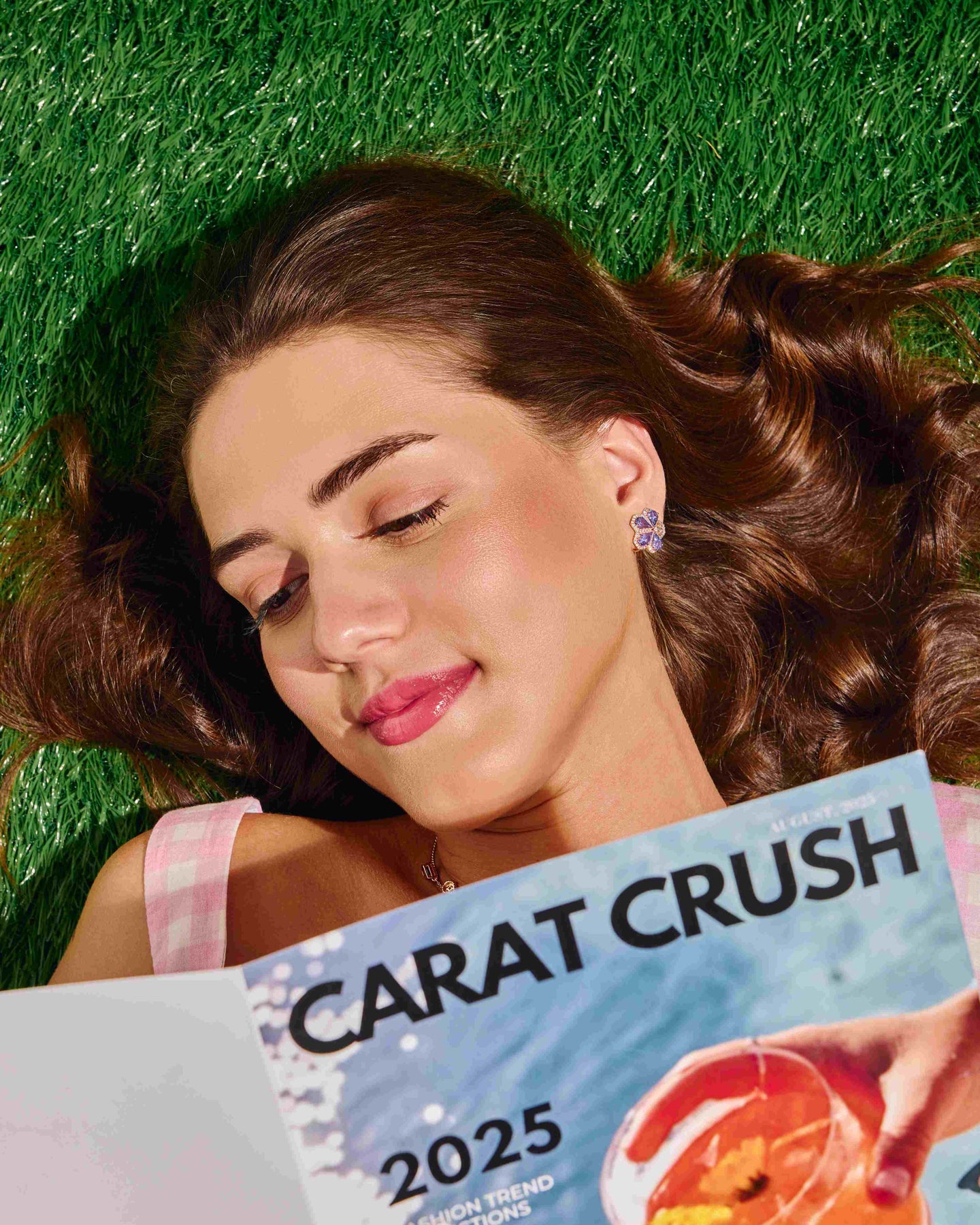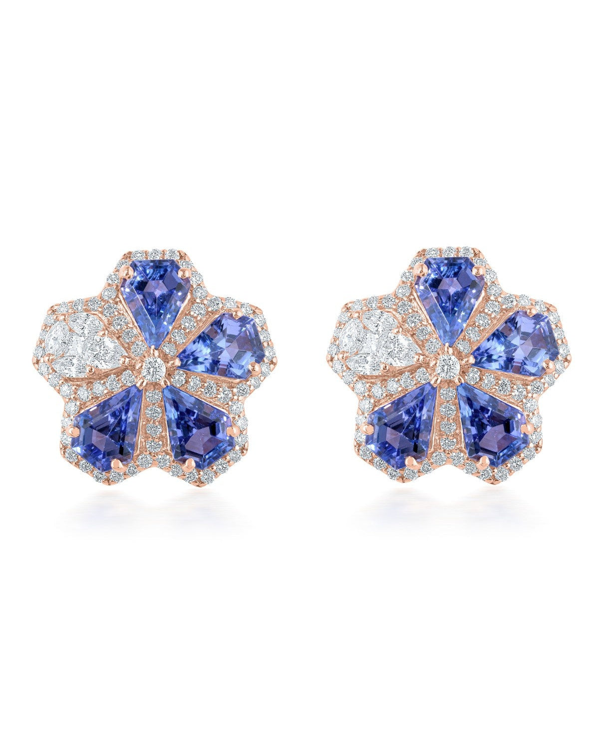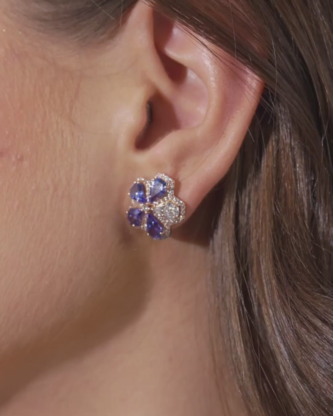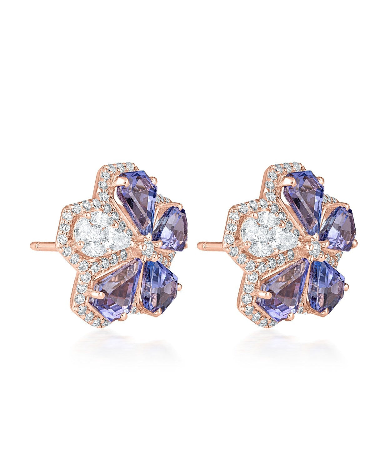 A bloom of shield-cut tanzanites framed with diamonds, these floral tops capture the charm of a jewel-toned garden that carries a secret bouquet of light.